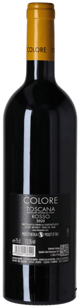 Colore 2023 er fremstillet på 100% Sangiovese, som Bibi Graetz udelukkende selekterer fra vinstokke med høj alder – nogle af dem over 80 år gamle! Bibi har i 2023 udelukkende brugt håndplukkede druer fra sine vinmarker i Lamole og Olmo. To to marker er opdelt i små parceller, der høstes enkeltvis over adskillige høstprunder, så kun optimalt moden frugt finder vej til den endelige flagskibsvin.