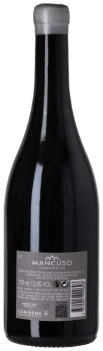 Mancuso Garnacha er fremstillet på 100% Garnacha fra 50–70 år gamle vinstokke, der klamrer sig til kalkholdige lerjorde i 600–650 meters højde ved Almonacid de la Sierra i Cariñena. De gamle stokke dyrkes uden pesticider og herbicider, og det lave udbytte på blot 2,5 kg pr. vinstok sikrer en ekstrem koncentration. Druerne håndhøstes og selekteres minutiøst, hvorefter macerationen strækker sig over næsten 50 dage ved kontrollerede 24–26 ºC med daglige overpumpninger for maksimal farve og aroma. Efter endt gæring lagres 65% af vinen i neutrale betontanke og resten i store 500-liters franske fade, som bevarer frugtens renhed og giver en diskret krydret finesse. Resultatet er en terroirdreven Garnacha med kraft og elegance, der uden problemer kan udvikle sig i op til 15 år fra høståret.
