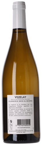 Closerie des Alisiers Vézelay er skabt på 100 % Chardonnay, som Stéphane Brocard selekterer fra 30 år gamle vinstokke på udvalgte skråninger i bourgogneappellation Vézelay. Området syd for Chablis, omkring den lille flod Cure, har et så unikt kvalitetspotentiale for Chardonnay, at kun hvidvinene må benytte sig af village-appellationen Vézelay, mens rødvinene på Pinot Noir sælges som regional Bourgogne. Hvidvinen er fremstillet i ren og frugtfrisk stil med temperaturstyret gæring på ståltank, efterfulgt af lagring i kontakt med de fine gærrester. Nordburgundiske Vézelay er en historisk pilgrimsby, som er optaget på UNESCOs verdensarvsliste på grund af sin romanske kirke samt sin unikke bakkeformation, hvis skråninger flere steder er prydet med smukke vinmarker.