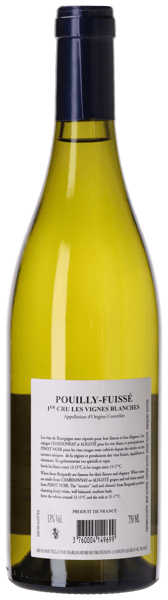 Vinen er fremstillet på 100 % Chardonnay, der håndhøstes fra den prestigefyldte Premier Cru-mark ”Les Vignes Blanches” i Pouilly-Fuissé. Marken ligger i det perfekte smørhul mellem ”Le Clos” og ”Les Perrieres”, der velsagtens kan betegnes som to af de bedste marker i hele Pouilly-Fuissé. Ved ankomst til vineriet afstilkes druerne og presses nænsomt, hvorefter mosten fordeles mellem egetræsfade og ståltanke til den alkoholiske gæring. Cirka 30 procent af fadene er nye, hvilket giver en fin balance mellem frisk frugt og elegant fadkrydderi. Efter gæringen gennemgår vinen fuld malolaktisk gæring for at opnå en blødere og mere harmonisk struktur. Derpå lagres den i 12 måneder på egetræsfade, igen med omkring 30 procent nye inden flaskning.