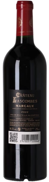 Château Lascombes 2. Grand Cru Classé 2022 er skabt på 67% Cabernet Sauvignon, 30% Merlot og 3% Petit Verdot, som er håndhøstet fra topslottets grusbanker i Margaux. Druerne fragtes nænsomt til vineriet i små 10 kilos beholdere. Her følger en streng dobbeltsortering, før og efter afstilkningen, inden druernes knuses let og koldmacererer 10 dage ved 8°C for ekstra udtræk af farve og aromaer. Efter gæringen omstikkes Lascombes til 18 måneders modning i kontakt med gærresterne på franske 225 liters barriquefade, heraf 60 % helt nye. Under ledelse af Michel Rolland placeres fadene i et såkaldt ”Oxoline rack system”, hvor omrøringen af gærresterne sker ved rotation af fadene uden unødig iltpåvirkning.