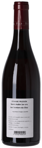 Vinen er fremstillet på 100% Pinot Noir, som familien Prudhon håndseleketerer fra 40-80 år gamle vinstokke fra den 1er Cru-klassificerede enkeltmark Sur Le Sentier du Clou. Den blot 1,5 hektar store parcel på 1er Cru marken ligger på en bjergskråning med ler og kalkstensbund, mellem Saint Aubin og Gamay.