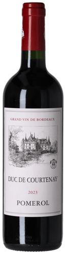 Duc de Courtenay 2023 frister fra glasset med sin koncentrerede mørklilla farve…. Næsen lover koncentreret, klassisk Pomerol med seriøst lækker duft af trøfler og skovbund, der smelter elegant sammens med årgangens delikat parfumerede aromaer af vilde røde blomster, sorte blommer, solbærbusk og hindbær. Fadlagringens perfekt afstemte nuancer af mokka, chokolade og cedertræ fuldender duftbilledet et touch af luksus… På tungen danser vinen med sin silkebløde tekstur, mens forførende smagsnuancer af mynte, solbær og blomme toppes af komplekse krydderier fra kældermodningen. Den lange eftersmag har en herlig frisk og vibrerende kvalitet, der virkerlig formår at vække den mørkfrugtede Pomerol-smag til live. Fint polerede tanniner og en klassisk skovbundskarakter runder smukt af. Wauw! Drik nu eller gem 8–10 år fra høståret.