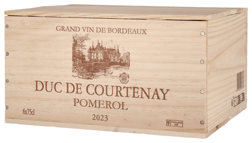 Hvordan er Duc de Courtenay Pomerol 2023 i trækasse fremstillet?