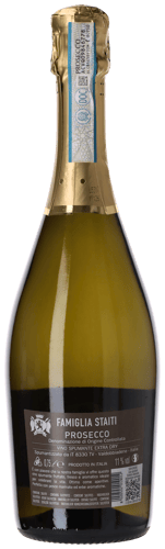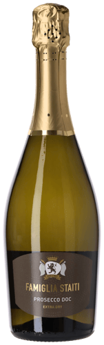 Famiglia Staiti Prosecco DOC Extra Dry er fremstillet på 100% Glera fra udvalgte skråninger i Prosecco DOC. Produceret efter Charmat-metoden, hvor vinen får sine bobler ved ”andengæring” på ståltank under tryk.