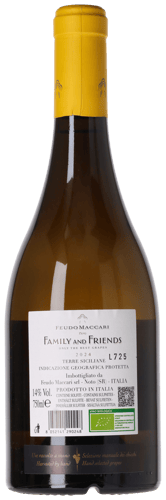 Family and Friends 2024 er fremstillet på 100% Grillo fra en sydvendt enkeltmark nær Noto, syd for vulkanen Etna. Terroirets bedste druer håndselekteres fra fritstående ”buskvine”, inden 16 dages gæring på en hemmelig kombination af betonæg og små burgundiske egetræsfade. Efter endt gæring modner flagskibet 6 mdr. på betonæg og fade, hvor kontakten med de fine gærrester giver fedme og krydret finesse som en stor Meursault. Vinen afrunder yderligere 6 måneder på flaske før frigivelse til salg.