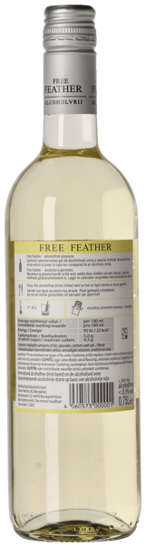 Free Feather Chardonnay laves ved at særligt udvalgte vine forsigtigt af-alkoholiseres ved højteknologiske processer, som bevarer de herlige aromaer og smage. Restsukkerindhold: 45,5 gr/L.