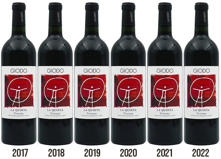 Som resultat høster Carlos Brunello nærmest pr. automatik 100 point hos de store anmeldere. Han kunne godt lave flere flasker, men Brunello-konsortiet sætter strenge grænser for, hvor mange flasker fra Giodo-marken, der må have Brunello på etiketten. Derfor bruger Carlo en del af markens ”100 point-druer” til at lave Giodo La Quinta Toscana Rosso IGT. En aromatisk, frisk og nærmest burgundisk elegant fortolkning af Sangiovese. Verdenklasse til attraktiv pris!