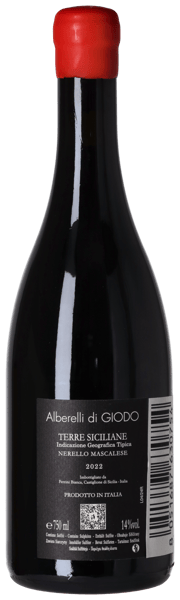 Alberelli di Giodo er fremstillet på 100% Nerello Mascalese fra en kølig, nordvendt enkeltmark med 80-100 år gamle ”buskvine”. Vi taler præ-phylloxera stokke, for vinlusen trives ikke i vulkansk sand 950 meter over havet. Mosten gærer på ståltank med 20 dages udblødning af drueskallerne. Vinen modner herefter 12 mdr. på 500-700 liters egetræsfade.