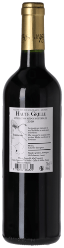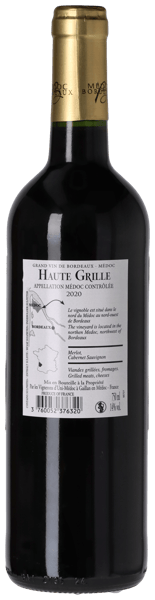 Haute Grill Médoc 2020 er fremstillet på et klassisk Bordeaux-blend bestående af 60 % Merlot og 40 % Cabernet Sauvignon, der høstes fra certificeret bæredygtige marker i Médoc. Vinen er fremstillet i en dejlig drikkevenlig stil med frugtbevarende gæring på ståltank.