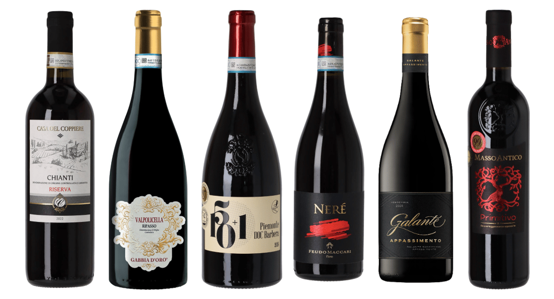 6 vine, 6 stilarter, ét formål: maksimal italiensk nydelse til minimal pris.