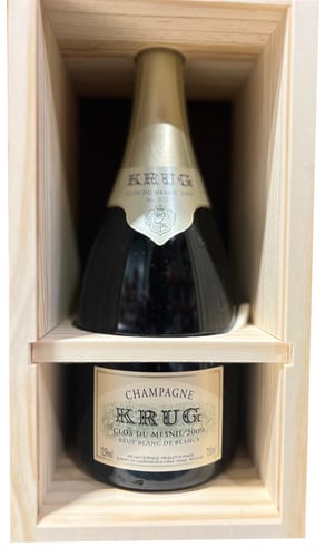 Krugs legendariske håndelag skabte i 2009 – for 21. gang siden debutårgangen 1979 – denne ultrasjældne Blanc des Blancs Champagne fra det sagnomspundede mikroterroir, Clos du Mesnil.