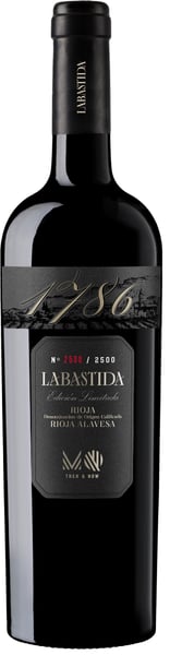 Labastida 1786 Rioja 2021 funkler dyb brombærrød i glasset… Næsen er nærmest eksplosiv med intense mørkfrugtede aromaer af blommer, saftige brombær, violer og sorte kirsebær, der giver plads til spanske middelhavskrydderier, lakrids og skvovbundsmineralitet samt udsøgte nuancer af vanilje, kaffe og chokolade fra den 16 måneder lange fadlagring... Rioja-vinen lægger sig blød og cremet på tungen, hvor fadet og den solmodne frugt møder en kølig, mineralske nerve fra højtliggende Rioja Alavesa. Silkefine tanniner melder sig i den storladne afslutning, der klinger af med lækre luksuskrydderier fra fadet. Stor Rioja – og til prisen ren verdensklasse! Drik nu, eller gem 10-15 år fra høståret.