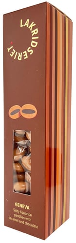 Lakridseriet Geneva pastiller pakket i brun design æske