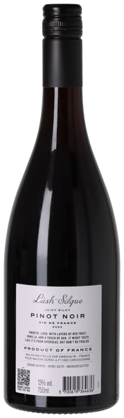 Lush Silque 2024 er en elegant Pinot Noir fra kølige sydfranske terroirs, hvor den kalkrige jordbund og de mange solskinstimer skaber ideelle betingelser for druemodningen.