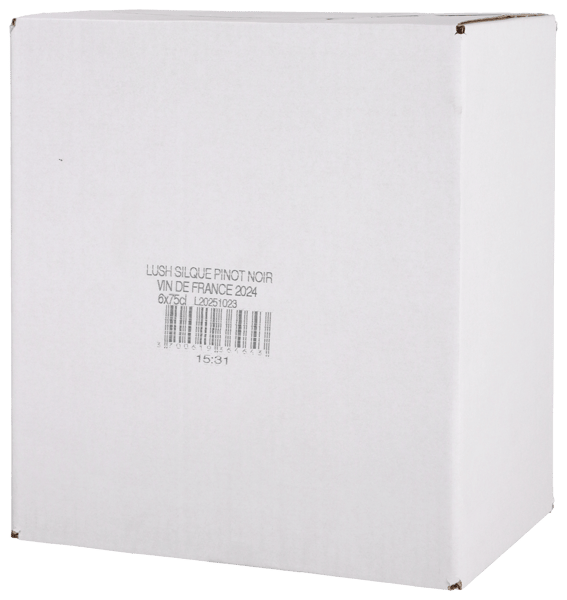Lush Silque 2024 er skabt på 100 % Pinot Noir fra det sydfranske kalkstensterroirs, hvor de ideelle klimaforhold giver druerne en perfekt balance af friskhed og smagsdybde. I kælderen anvendes burgundiske metoder, hvor en nænsom pigeage under gæringen trækker farve, smag og tanniner fra drueskallerne, hvilket giver vinen dens silkebløde tekstur. Den lagres derefter i både fransk og amerikansk eg i 6 måneder, hvilket tilføjer dybde og en krydret kompleksitet, der balancerer frugtens elegance til UG.