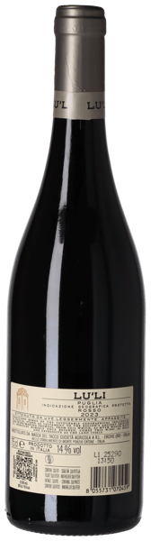 Lu’Li 2023 er fremstillet på et syditaliensk blend af Primitivo, Montepulciano, Sangiovese og Lambrusco, der inden høsten koncentreres til små rosiner ved lufttørring på vinstokken. Vinen gærer med frugtbevarende temperaturstyring samt maceration af drueskindet, inden modningen på ståltank.