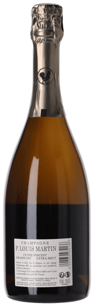 P. Louis Martin Champagne Cuvée Vincent Blanc de Blancs Extra Brut 2016 er fremstillet på 100% Chardonnay fra topmarker omkring Grand Cru-klassificerede Bouzy i Montagne de Reims. Basisvinen gærer og modner frugtbevarende på temperaturreguleret ståltank (inkl. blødgørende malolaktisk gæring). Vinen opnår sine ekstremt fine bobler og fortryllende kompleksitet fra andengæringen samt hele 88 måneders modning på flaske. Skabt i relativt tør stil med dosage på 5,0 gram sukker pr. liter før frigivelse til salg.