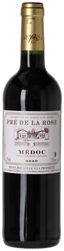 Pré de la Rose Médoc 2020 funkler mørk kirsebærrød med næsten sort kerne i glasset… Næsen charmerer med toplækre Médoc-aromaer af viol, mynte, solbær, blomme og kirsebær, der fuldendes med spændende urtekrydderier, mineralsk skovbund, knuste sten og et touch af chokolade… Vinen lægger sig blød som silke på tungen, hvor bærfrugtens intensitet og nuancerigdom bekræfter Médoc-årgangens tårnhøje status. 2020’s uimodståelige frugtcharme går elegant i spænd med mikroterroirets grusede mineralitet, der i eftersmagen toppes med bøfvenlige tanniner samt et urtekryret myntestrejf... Fremragende Médoc-køb! Drik nu, eller gem 6-8 år fra høståret.