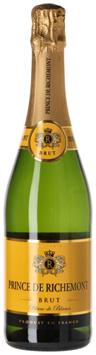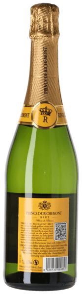 Prince De Richemont Blanc de Blancs Brut er fremstillet i frisk og frugtpræget stil, hvor vinens bobler dannes ved såkaldt ”andengæring” på ståltank under tryk.