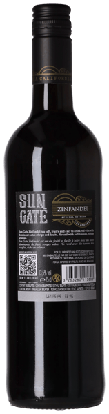 Vinen er fremstillet på 100% Zinfandel, som Sun Gate selekterer fra udvalgte californiske marker omkring byen Cutler. Mosten af de optimalt solmodne druer gærer med frugtbevarende temperaturstying på ståltank, inden modning og aftapning på flaske.