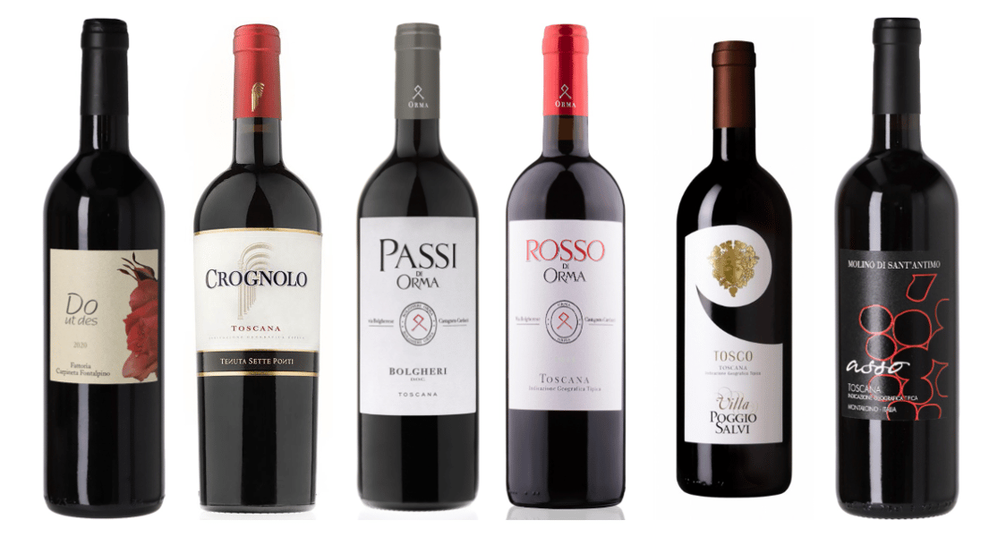 Vi har et af landets største sortimenter af supertoscanere i alle afskygninger og prisklasser. Supertoscaner-smagekassen giver dig mulighed for at smage seks af de mest populære vine: fedmefuld Merlot, solmoden Sangiovese og kraftfuld Cabernet Sauvignon. Kvalitetsniveauet er tårnhøjt og priserne overraskende lave!