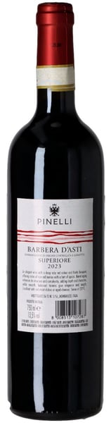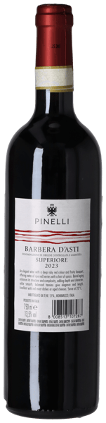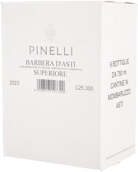 Pinelli Barbera d'Asti Superiore DOCG 2023 står mørk brombærrød i glasset... Duften afslører en Barbera i absolut topform – fuld af liv og energi, hvor den friske bærfrugt nærmest danser ud af glasset. Sorte, saftige kirsebær, modne blommer, viol, hindbær og brombær ledsages af strejf af lakrids og urtekrydderi, mens diskrete fadnoter af kaffe, vanilje og chokolade tilføjer både dybde og kompleksitet… Smagen følger smukt op med saftig og levende frugt fra første slurk. Fine urtenoter, silkebløde tanniner og en perfekt afbalanceret krydring fra fadet løfter afslutningen op på topniveau. Essesen af piemontesisk, madvenlig Barbera. Drik nu, eller gem 5-7 år fra høståret.