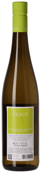 Det stejle terroir er velsignet med 45 år gamle vinstokke med rødderne boret dybt ned i en mineralholdig, mager og gruset jordbund. Resultatet er perfekt modne druer, som Weingut Tesch her omsætter til tør Nahe Riesling i ren verdensklasse!