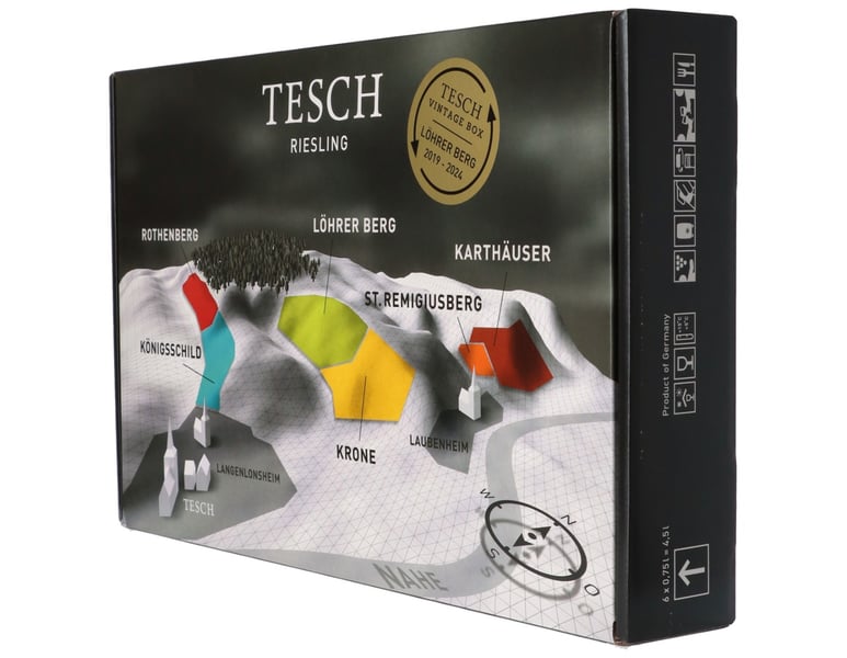 "We present a true rarity. A strictly limited library box featuring one bottle each of LÖHRER BERG single-vineyard Riesling from the past six vintages – 2019 to 2024. Among them are hot, dry summers as well as cooler, more balanced years. Discover the evolving character of this extraordinary vineyard and experience how maturity and complexity unfold over time." - Martin Tesch, ejer og vinmager