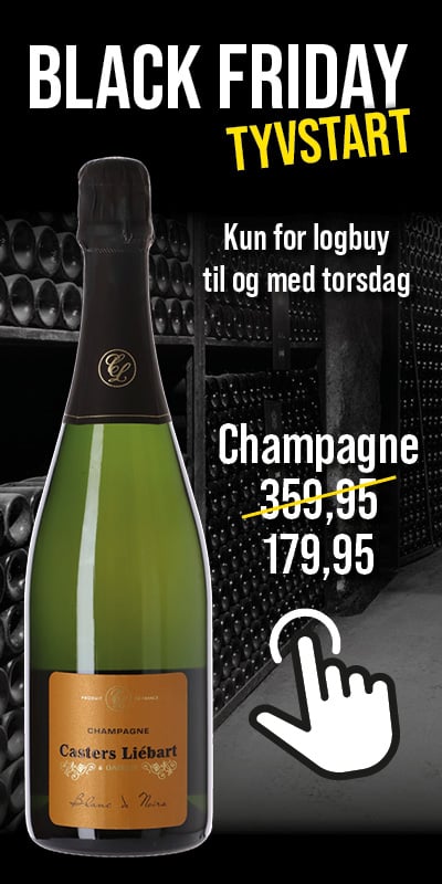 BLACK FRIDAY SPAR 43% Casters Liébart Champagne Blanc de Noirs Brut 93 point. Selvom dette er en Blanc de Noirs, altså hvid champagne lavet på blå druer, i dette tilfælde 80% Pinot Meunier og 20% Pinot Noir,... 93 Point Winewherever, Rasmus Christensen 92 Point Mad og Monopolet 1 fl. pr. stk. 359,95 DKKBEDSTE PRIS 6 fl. pr. stk. 204,95 DKK Læg i kurv Indhent tilbud på storkøb