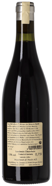 GE (Gestad) Syrah 2023 står mørk kirsebærrød med funklende violette glimt i glasset... Allerede i duften meget lig rød nordrhône! Vi taler klassisk Syrah-duft af morterknuste sorte peberkorn, violer, lavendel, vilde hindbær, blå blommer og solmodne brombær, der åbner flot op for dybe noter af røget kød, sorte oliven, læder, estragon, kryddernellike og vanilje… I munden generøs, powerfuld og intens for en tysk rødvin, der samtidig begejstrer stort med sin Spätburgunder-lignende saftighed! Lækker finish med grønne urter og frisk mineralitet i perfekt harmoni med frugten og de søde krydderier fra fadet. Fremragende Syrah! Drik nu, eller gem +10 år fra høståret.