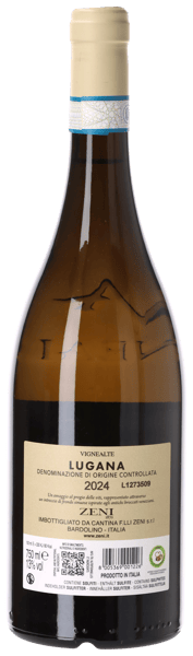 Lugana Vigne Alte 2024 er fremstillet på 100% Turbiana (en lokal variant af Verdicchio), som Zeni håndhøster ved optimal modenhed fra vinmarker nær Gardasøens sydlige bred. Drueskallerne udblødes nogle timer i mosten, hvilket giver den færdige vin ekstra kompleksitet og smagsdybde. Temperaturstyret gæring og kortvarig modning på ståltank for en frisk og frugtig gengivelse af druesort og terroir.
